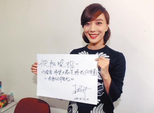 王珞丹按捺不住興奮,拍著手接詞兒道:“準了!”誰承想這個大叔還沒過完戲癮,繼續(xù)道:“王珞丹同志,這是我的申請書,請立馬給我簽名吧!”由驚轉喜的現場粉絲們已經笑作一團,他們紛紛起哄道:“這個必須簽!”王珞丹已經麻溜地簽上了,還一邊感慨:“真好,我戲里的臺詞他都記得,一字不差,這個真的必須簽?。?rdquo;